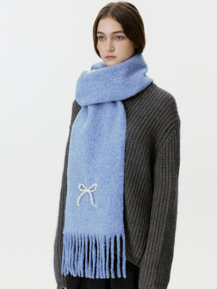 The Ultimate Coquette Essential Embrace your inner romantic with our Wool Blend Pearl Bow Scarf....