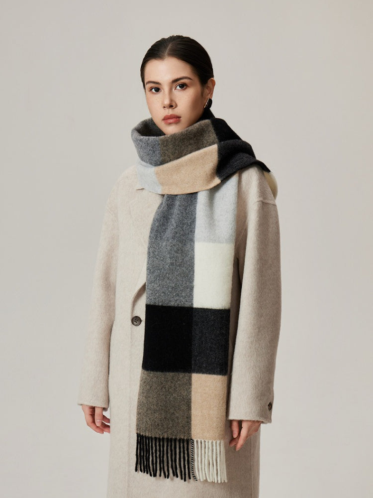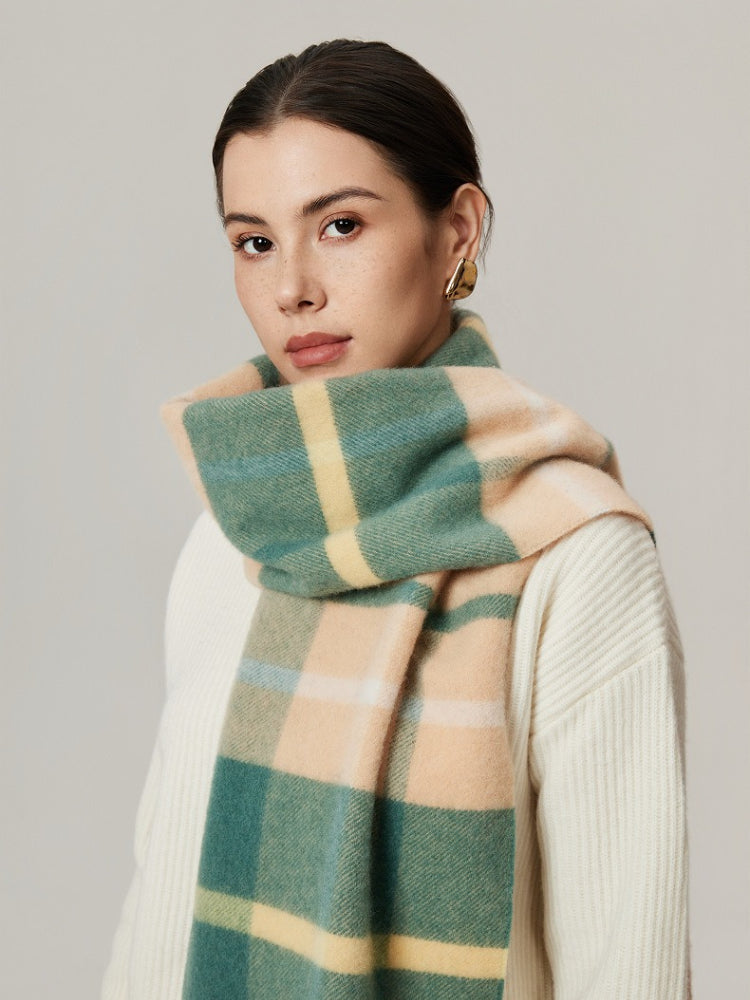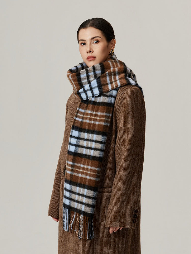 Channel the sophisticated ease of the 'Academia' aesthetic with our 100% Lambswool Plaid Scarf. This piece reimagines the classic tartan check with a specialized "fluffy" finish that feels as comforting as a warm embrace on a crisp autumn day.