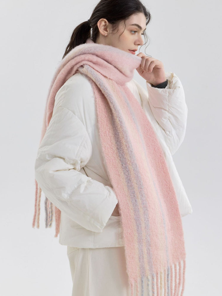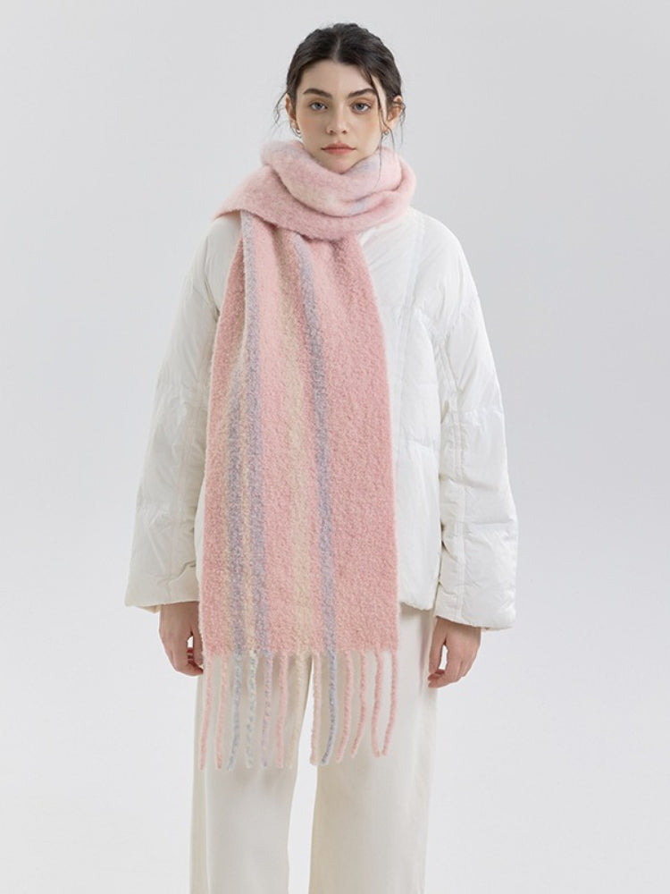 This is a true premium winter investment. Crafted with a high concentration of 60% Natural Wool, it offers superior thermal insulation and breathability compared to standard synthetic scarves. The fabric is heavily brushed for a cloud-like, fuzzy texture that traps heat instantly. Weighing nearly 10 oz (280g) and measuring over 86 inches long, it provides luxurious, weighted warmth that feels like a protective embrace.