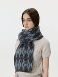 Complete your winter wardrobe with this refined Charcoal Argyle Knit Scarf. Featuring a classic diamond (rhombus) jacquard pattern in tonal shades of slate grey, charcoal, and black, this piece is the epitome of the "Dark Academia" aesthetic. Its clean, geometric lines offer a sharp, intellectual look that pairs flawlessly with wool blazers and structured trench coats.