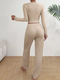 - Top Style: Long Sleeve Cropped V-Neck with Buttons