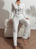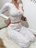Coquette Ditsy Black Heart Print Ribbed Pajama Set