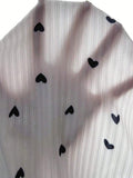 Step into a world of whimsical romance with our Coquette Ditsy Black Heart Print Ribbed Pajama Set. This enchanting two-piece loungewear suit features a pristine white ribbed knit canvas scattered with tiny, delicate black hearts, perfectly capturing the viral "soft girl" aesthetic. The long-sleeve top is designed with a feminine V-neckline adorned with three dainty black satin bows and contrasting black lettuce-edge trim that frames the silhouette beautifully. Paired with matching high-waisted pants that offer a comfortable yet figure-hugging fit, this set is ideal for cozy movie nights, aesthetic sleepovers, or simply feeling cute while you sleep.