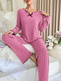 Coquette Contrast Trim Ribbed Pajama Set