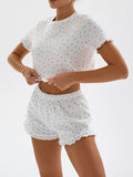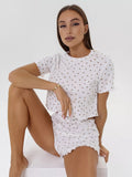 Ditsy Heart Print Ribbed Tee & Shorts Set