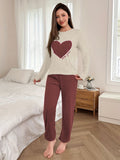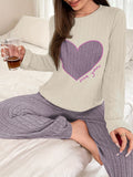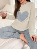 Wrap yourself in warmth and whimsy with our Coquette Heart Patch Colorblock Lounge Set. This cozy two-piece ensemble features a relaxed beige long-sleeve top adorned with a large, textured pink heart applique and sweet "love you" script. The top is paired with contrasting dusty pink trousers crafted from a soft, brushed ribbed knit that offers superior warmth and comfort. Designed for the modern romantic, this set effortlessly blends the comfort of your favorite pajamas with a cute, "put-together" look that's perfect for lazy weekends, video calls, or a casual coffee run.
