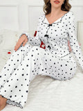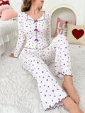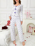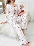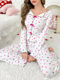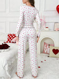 Coquette Heart Print Ribbed Pajama Set