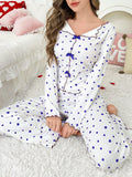 - Comfortable Fit: The long-sleeve top and matching long pants feature a relaxed yet flattering silhouette suitable for sleeping or lounging.
