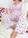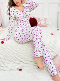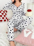 Heart Print Ribbed Pajama Set