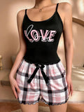 Coquette "Love" Graphic Cami & Plaid Shorts Set