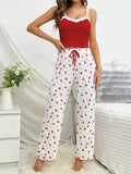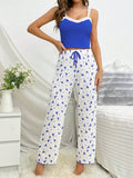 Elevate your summer evenings with our Coquette Pink Ribbed Cami & Floral Pants Pajama Set. This exquisite two-piece ensemble blends the sweet innocence of the coquette aesthetic with a touch of "high-end" elegance. The top features a soft, pink ribbed knit camisole delicately framed with white lace along the neckline and straps, offering a romantic, vintage-inspired look. It pairs perfectly with the airy, white wide-leg trousers, which are adorned with a charming pink ditsy floral print. Whether you're enjoying a slow morning coffee or settling in for a beauty sleep, this set promises both style and supreme comfort.