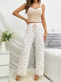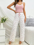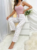 Pink Ribbed Cami & Floral Pants Pajama Set