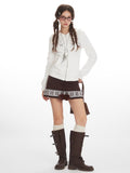 Unlike oversized loungewear, this jacket features a flattering slim-fit silhouette that contours to your body, making it an ideal layering piece. The chest is embellished with a delicate pattern of sparkling rhinestones arranged in adorable bows and hearts, adding a subtle shimmer that catches the light. Pair it with a mini skirt and leg warmers for the ultimate doll-inspired look.