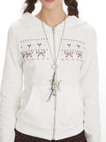 Coquette Aesthetic Rhinestone Bow Zip-Up Hoodie