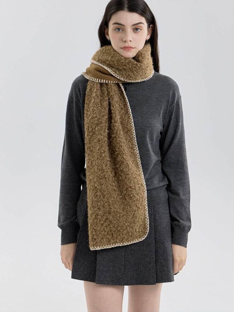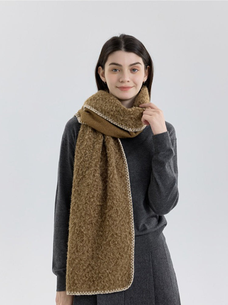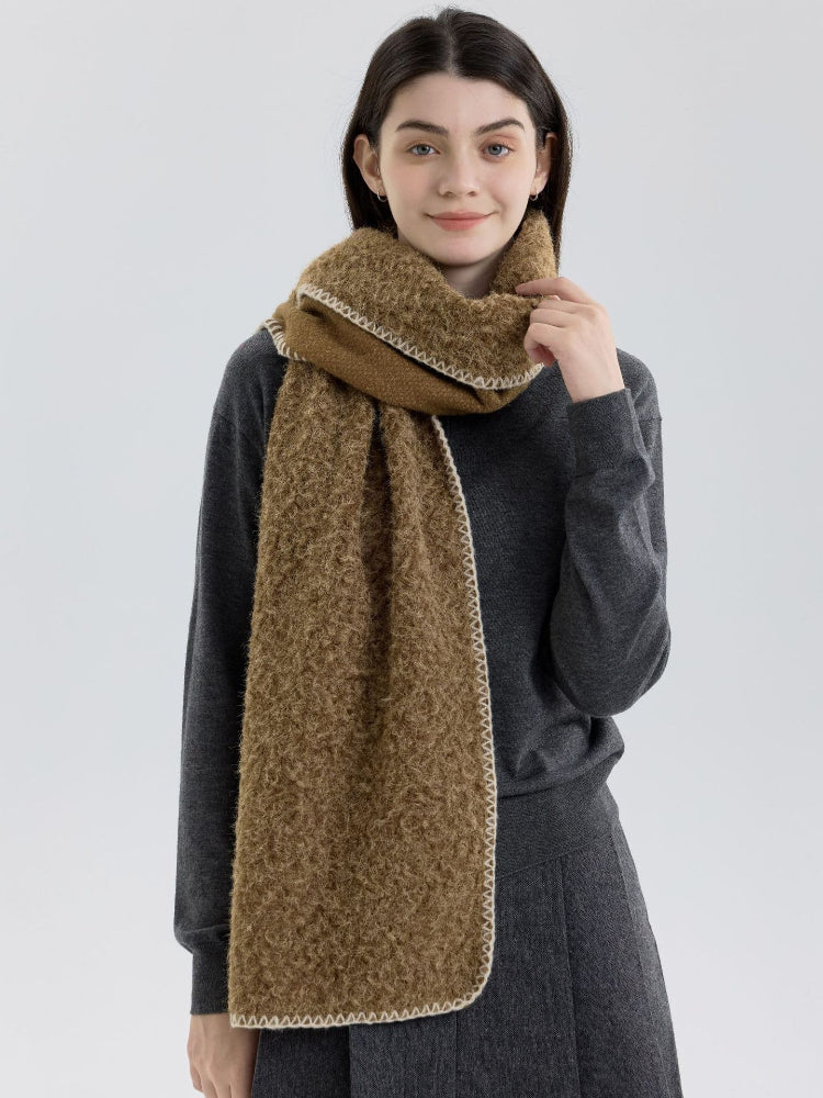 Wrap yourself in a cloud of warmth this season. Our Cozy Bouclé Wool Blend Scarf is designed for the woman who refuses to sacrifice style for comfort. Crafted from a premium "loop yarn" structure (Bouclé), this scarf offers a unique, nubby texture that adds depth and sophistication to any winter ensemble.