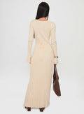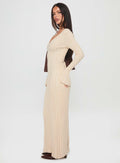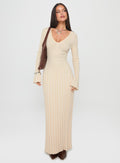 Cream Ribbed V-Neck Long Sleeve Maxi Dress - Soft Viscose Tie-Waist Lounge Gown