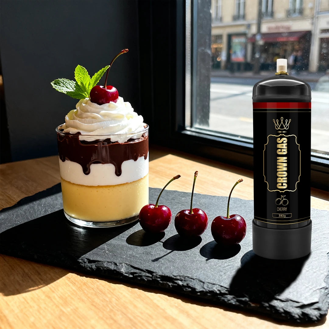 Use with compatible whipped cream dispensers to create smooth, stable whipped cream infused with a rich and sweet cherry aroma, perfect for desserts, beverages, coffee, and bakery applications.