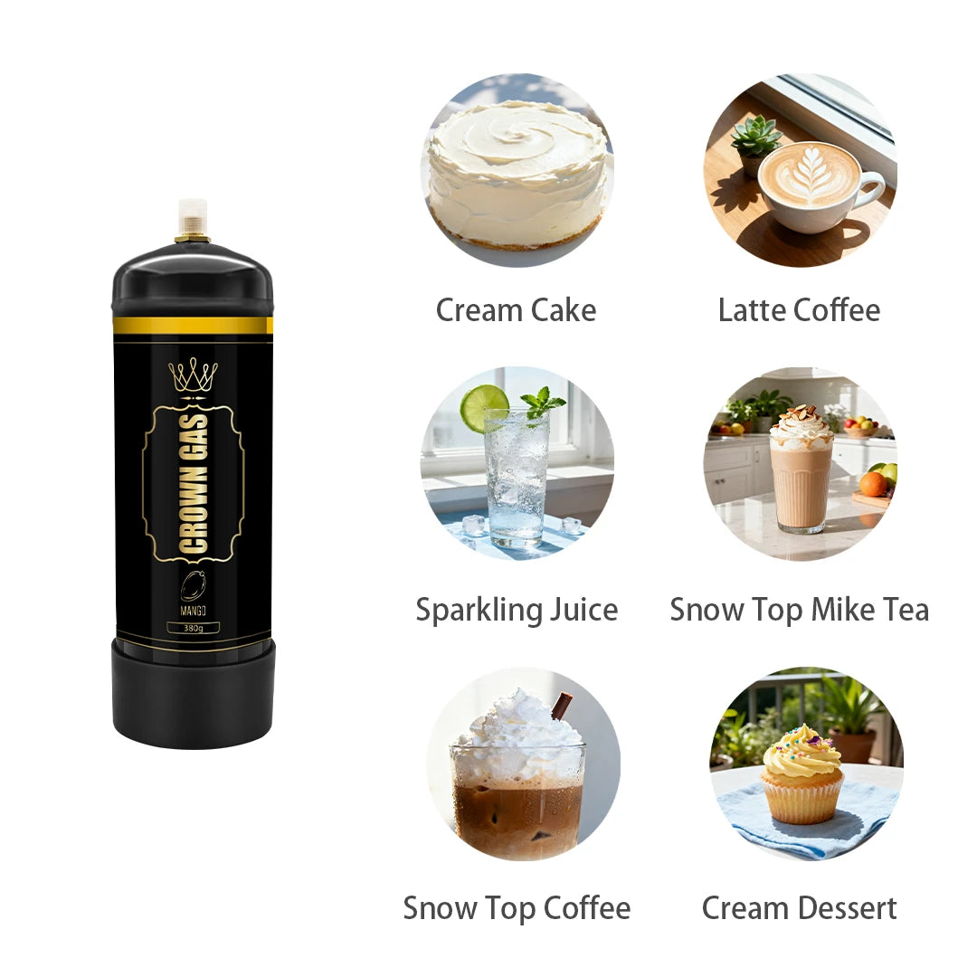 The Crown Gas whipped cream charger is made from high-quality stainless steel, providing excellent durability and a secure, leak-resistant design.
