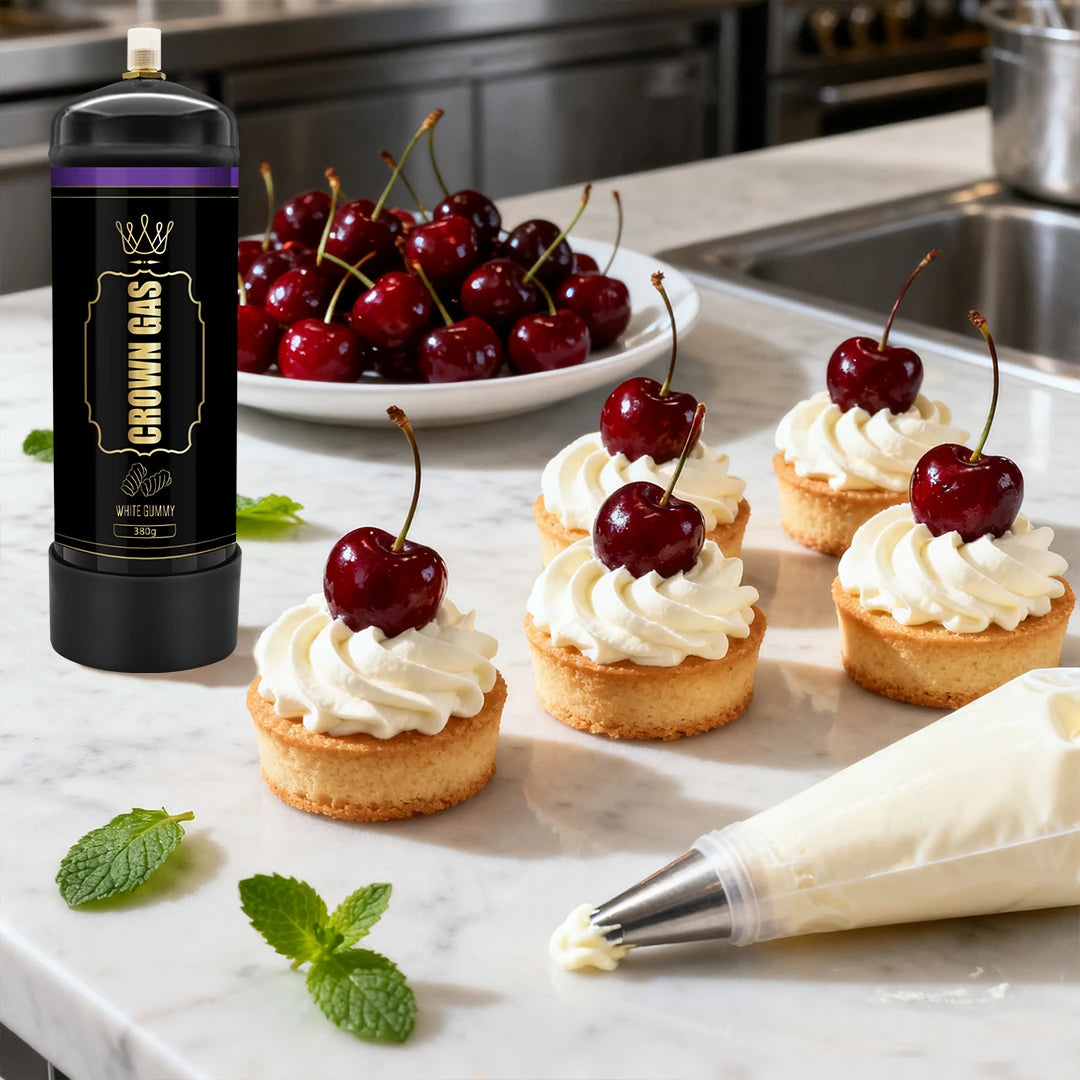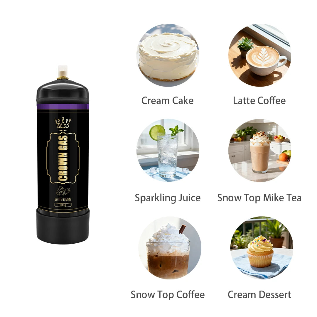 Use with compatible whipped cream dispensers to create smooth, stable whipped cream infused with a sweet and nostalgic white gummy candy aroma, perfect for desserts, beverages, coffee, and bakery applications.