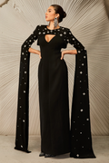 Sequin Embellishment, Cape Sleeve Design, Round neck, Cut-out Detail, Maxi Length.
