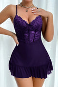 Indulge in a night of mystery and romance with this exquisite Deep Purple Mesh Robe & Chemise Set. This two-piece peignoir collection is designed to make you feel regal, confident, and undeniably sexy.
