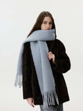 Soft Dusty Blue Wool Blend Scarf with Extra Long Tassels