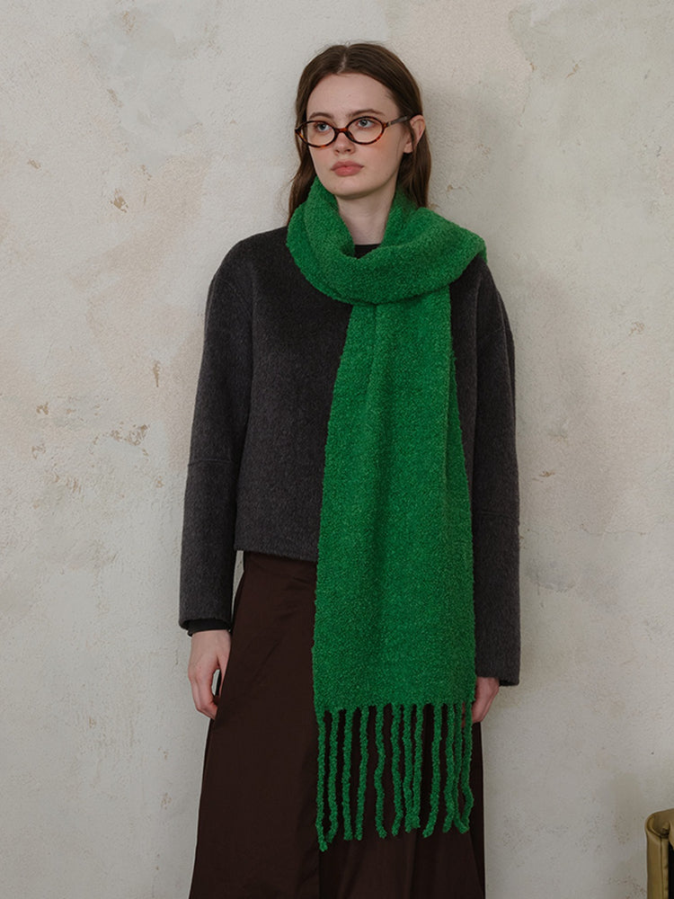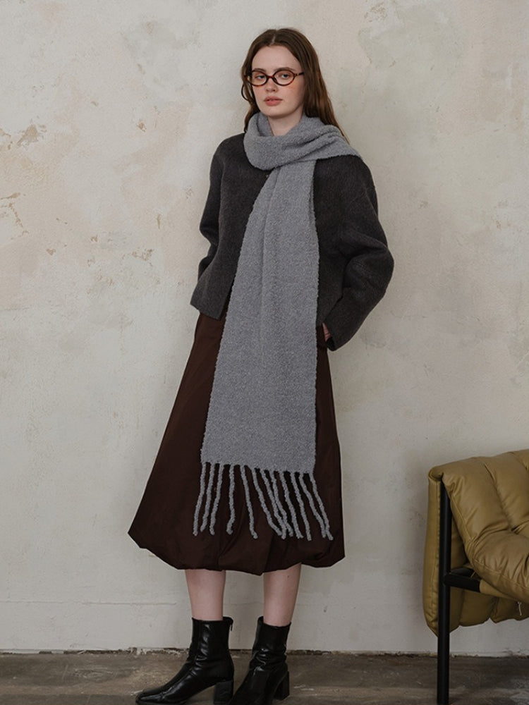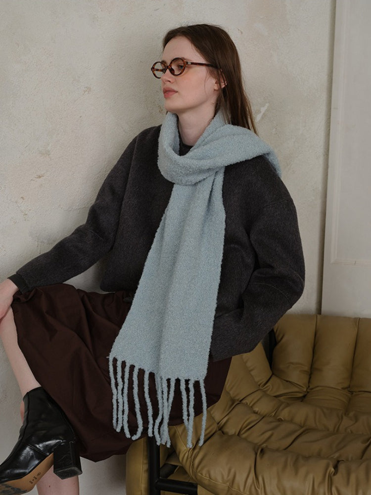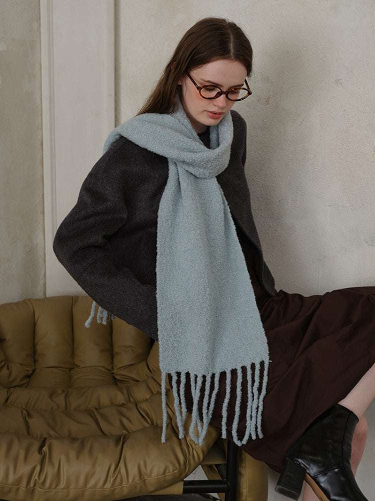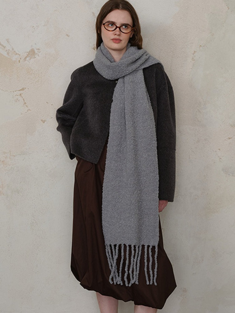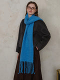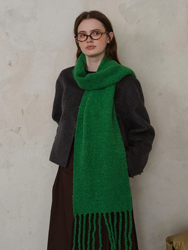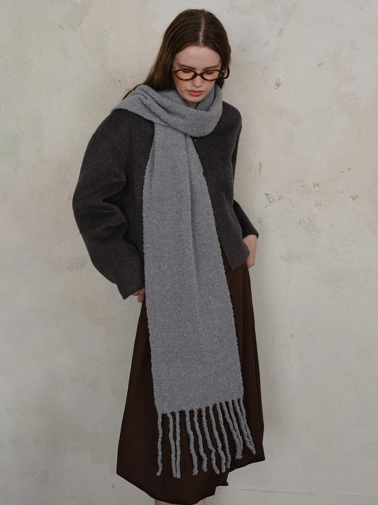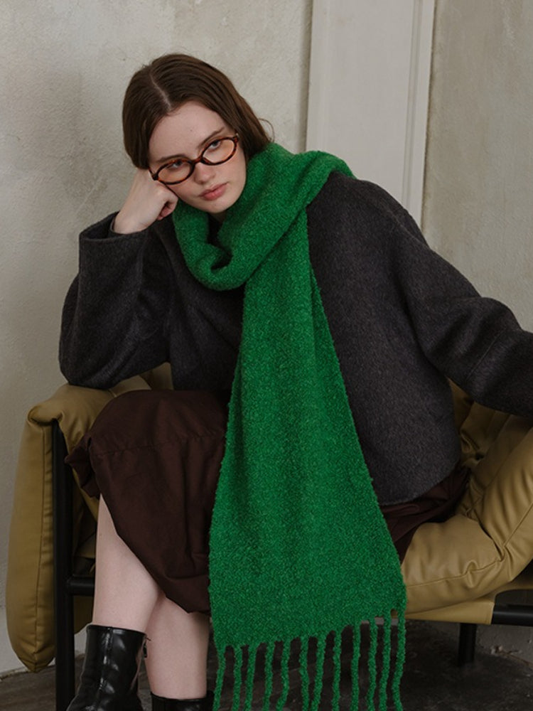 Constructed from a high-quality Wool Blend, this scarf locks in heat while remaining breathable. The unique loop knitting technique creates a thick, airy volume that feels substantial (approx. 9.9 oz) without weighing you down. Its extra-long length allows for dramatic styling—wrap it multiple times for a "snorkel" hood effect or let the long tassels sway as you walk.