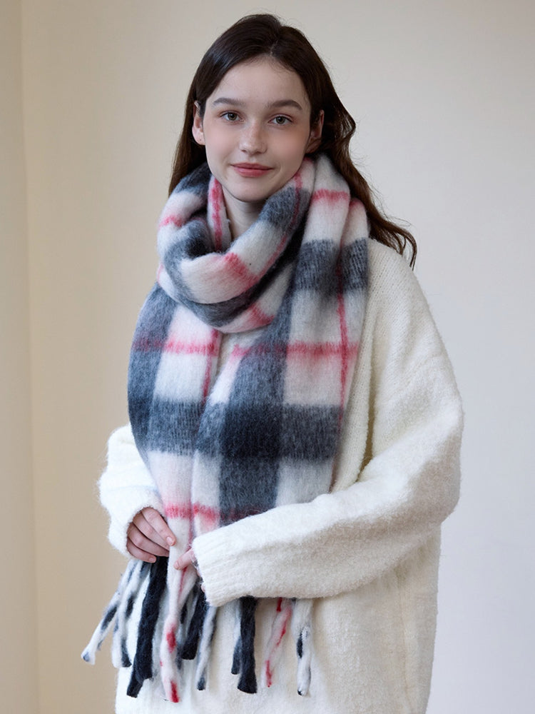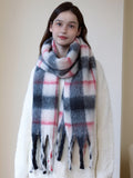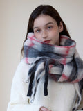 Wrap yourself in the cloud-like luxury of our Extra-Long Chunky Plaid Scarf. Designed with a 'Korean Street Style' influence, this accessory features a classic white and grey check pattern accented with a sweet strawberry-pink stripe, creating a look that is both timeless and fresh.