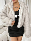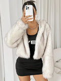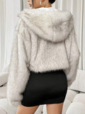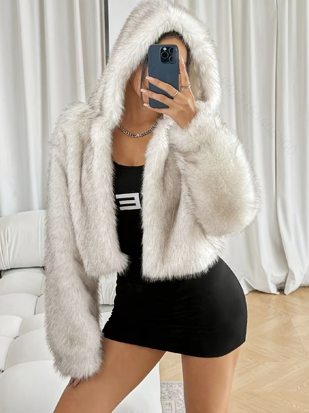 Embrace the "Coquette" winter aesthetic with our **Frost White Faux Fur Cropped Hoodie**. This ethereal piece is the ultimate "Snow Angel" staple, featuring a pristine white base with delicate silver-grey tipping that catches the light like fresh snow. Designed with a playful cropped silhouette and a cozy, oversized hood, it perfectly balances Y2K nostalgia with modern "Old Money" après-ski vibes. Whether layered over a slip dress for a gala or paired with high-waisted denim for a chic city stroll, this jacket offers instant glamour and cloud-like comfort.