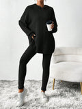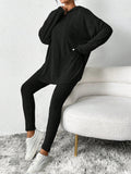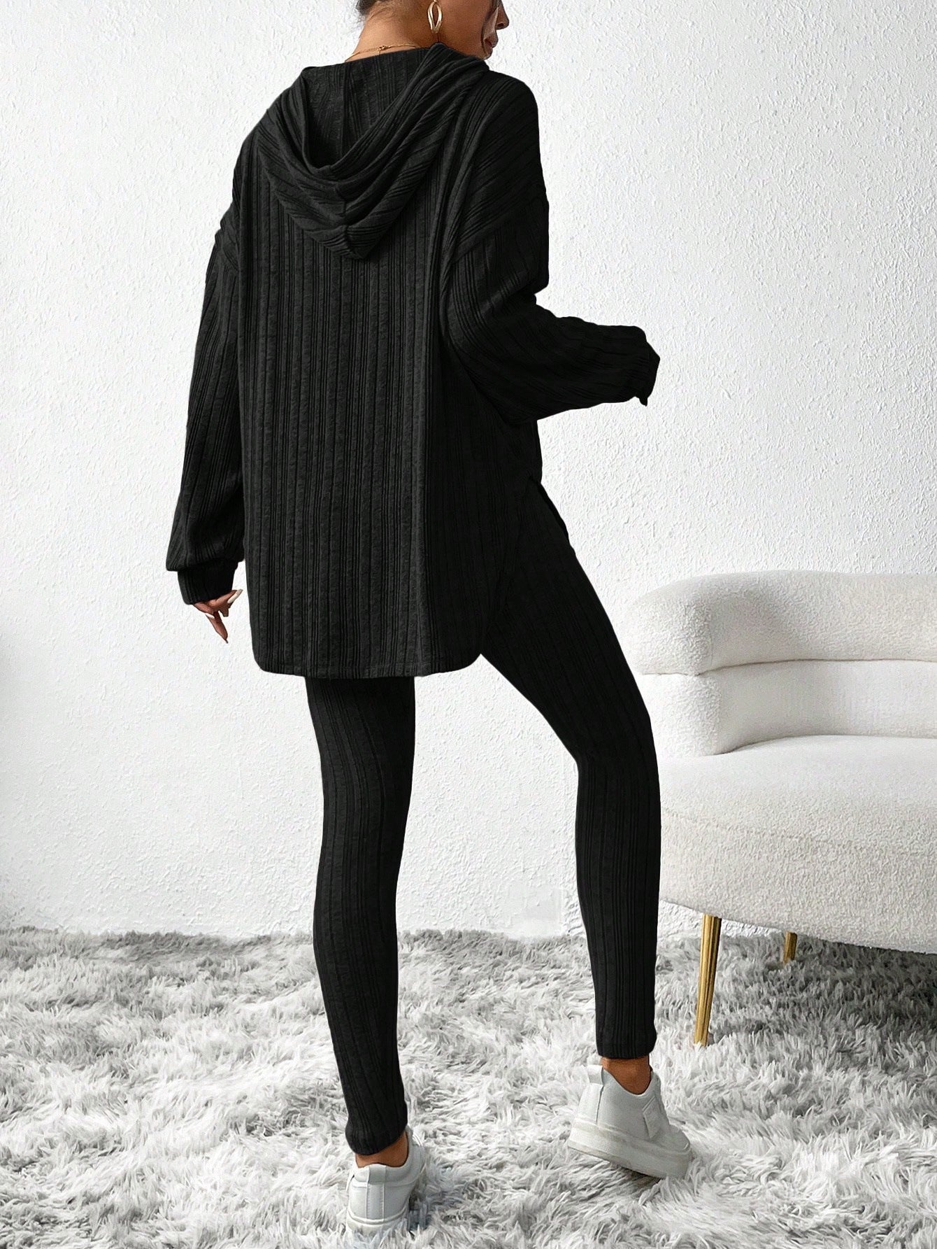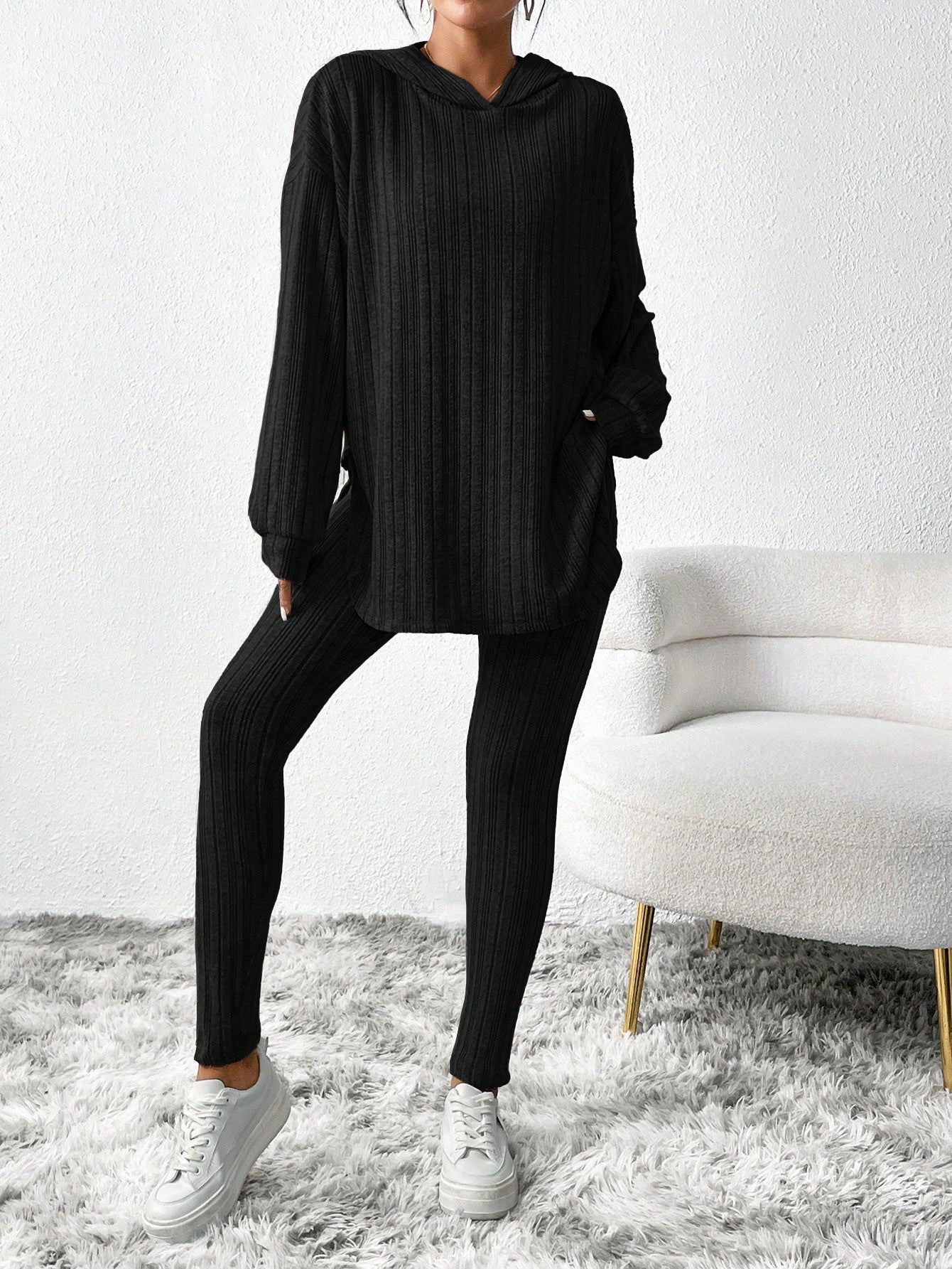 Midnight Black Ribbed Knit Hoodie & Leggings Set
