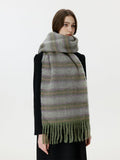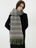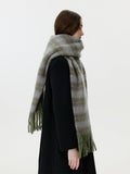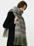 Woven with a premium blend containing 10% Wool, this scarf is brushed to create a fuzzy, mohair-like texture that traps heat while feeling incredibly soft. Weighing in at 8.1 oz (231g), it offers substantial warmth. Its extra-long length of 83 inches (including tassels) allows for voluminous wrapping, making it a versatile unisex staple for anyone who appreciates understated elegance.
