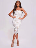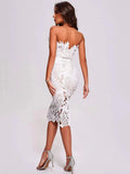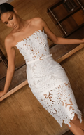 Nataly White Leaf Lace Strapless Midi Dress - Belted Monstera Cutout Summer Gown