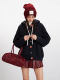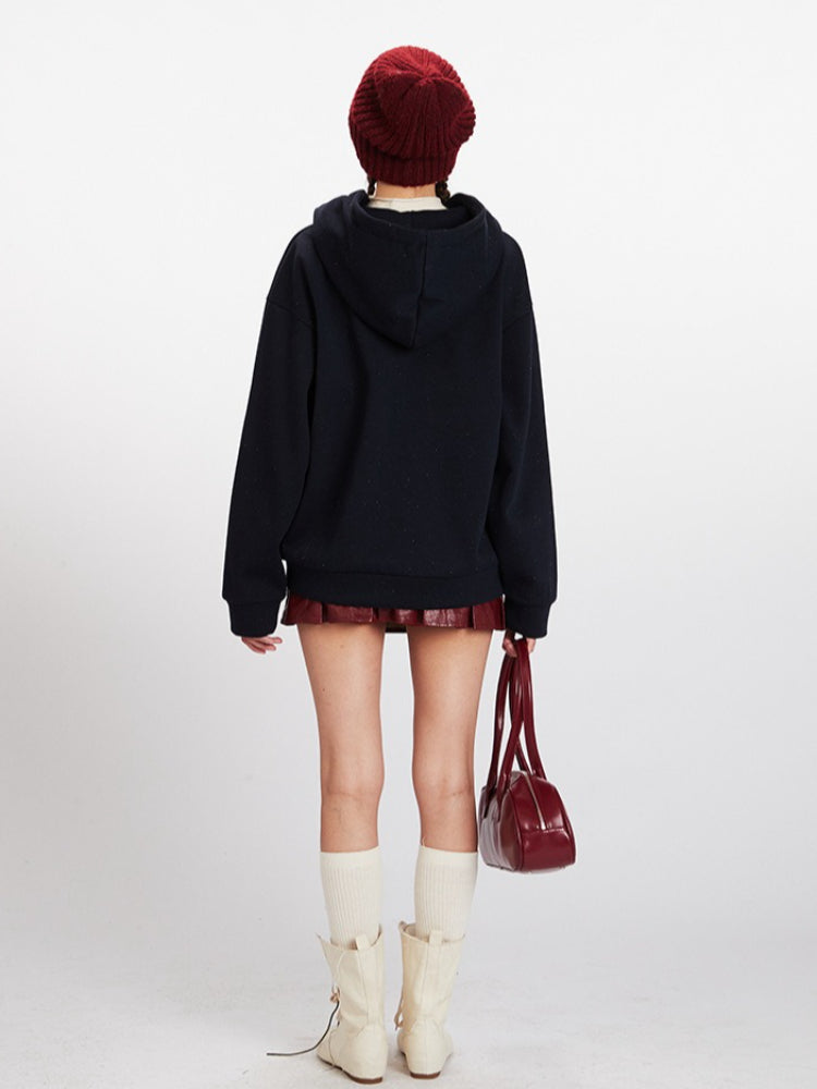 Add a touch of playful nostalgia to your winter wardrobe with this Navy Speckled Apple Button Hoodie. Perfectly capturing the charm of the "Teacher Core" and "Mori Girl" aesthetics, this cardigan evokes the feeling of a cozy day in a storybook classroom.
