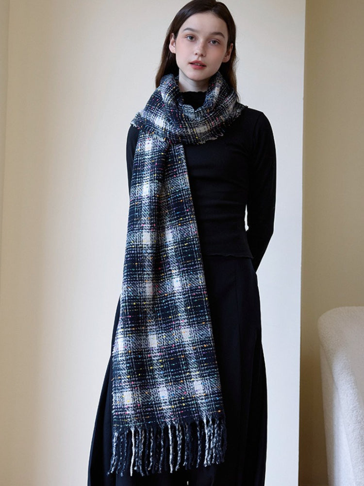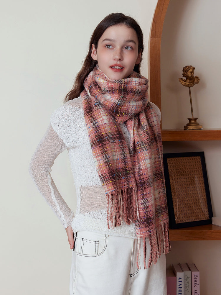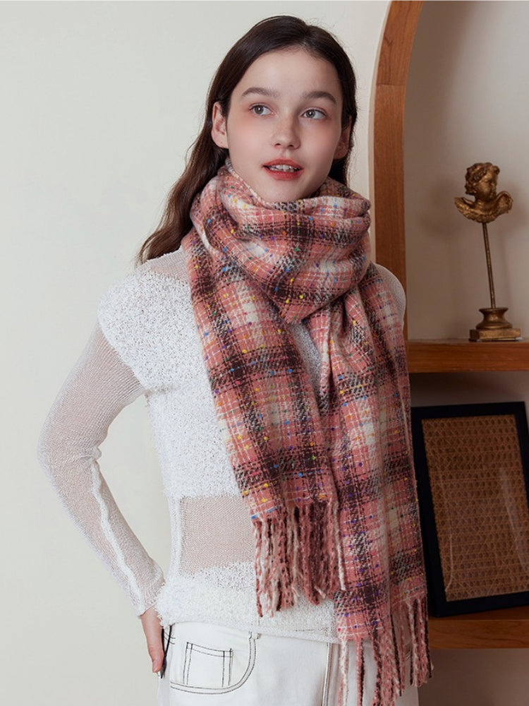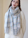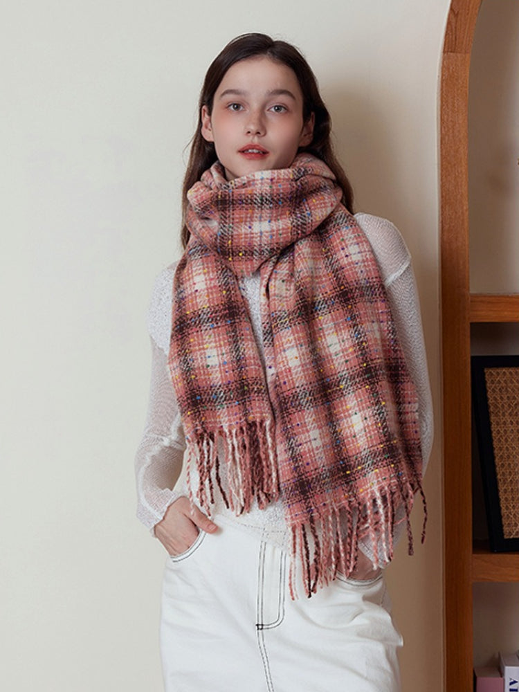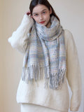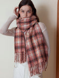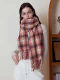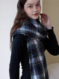 Perfect for the 'Soft Girl' or 'Artsy' aesthetic, this scarf offers a generous length of over 81 inches (206cm). Whether wrapped snugly around your neck or draped as a wide shawl to show off the subtle plaid texture, its faux cashmere finish ensures a "glutinous," soft touch that feels like a warm hug.