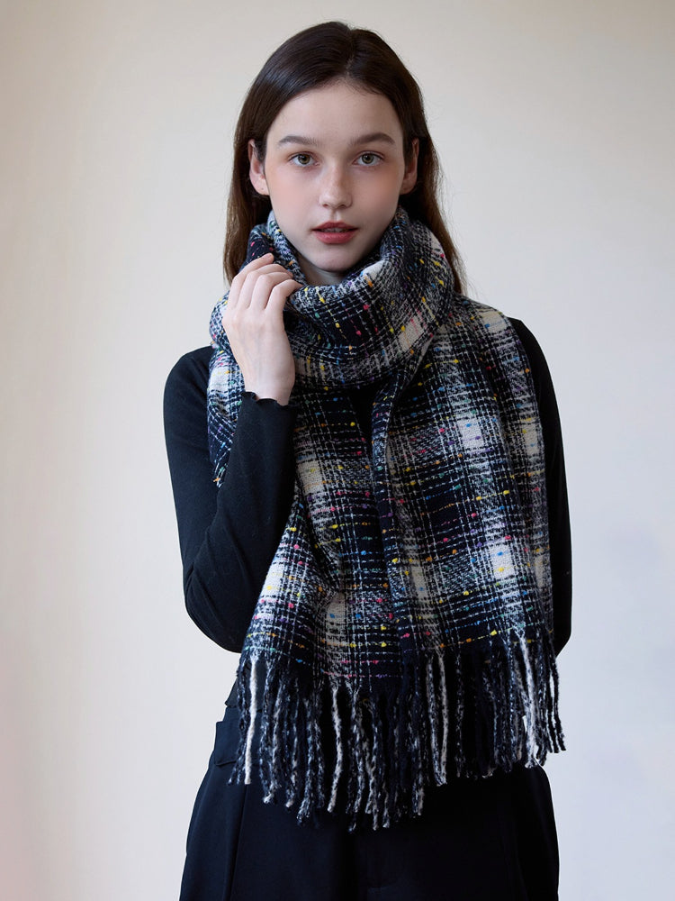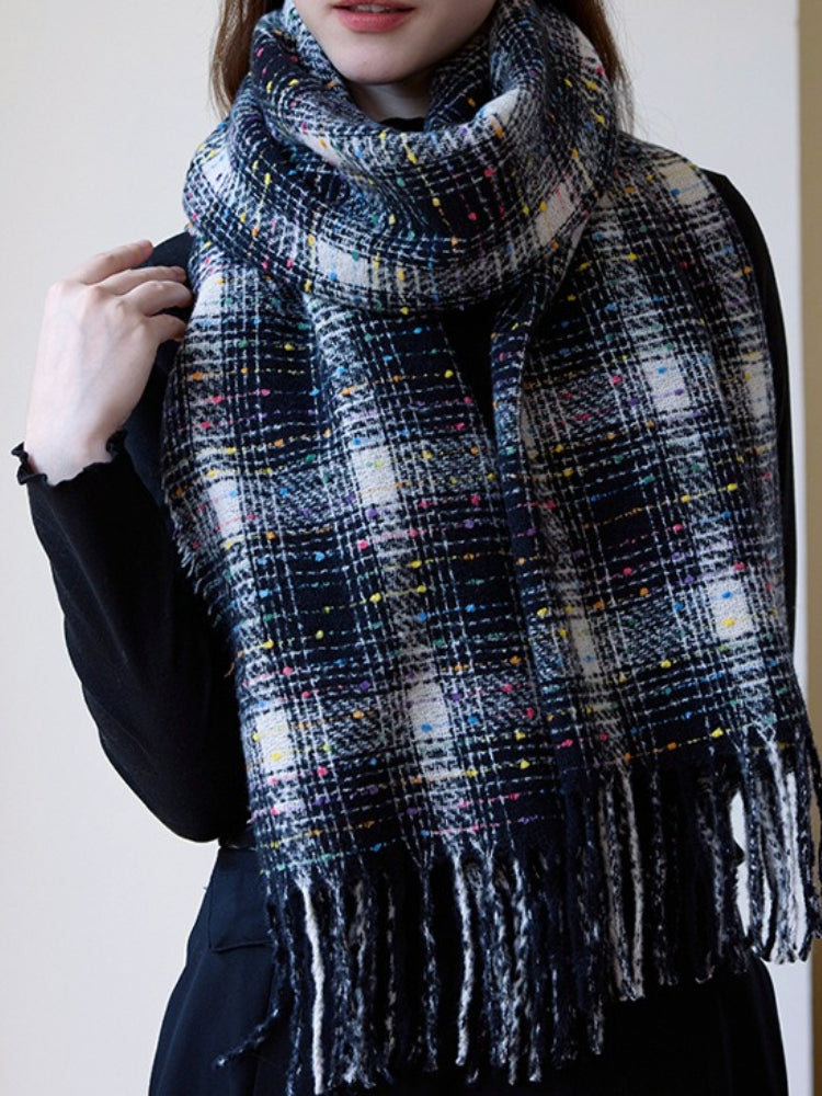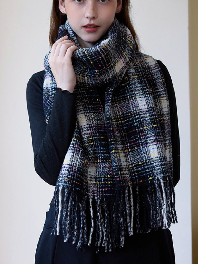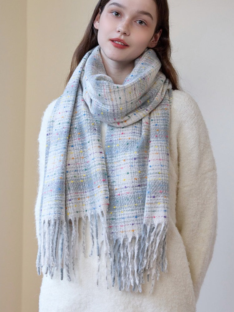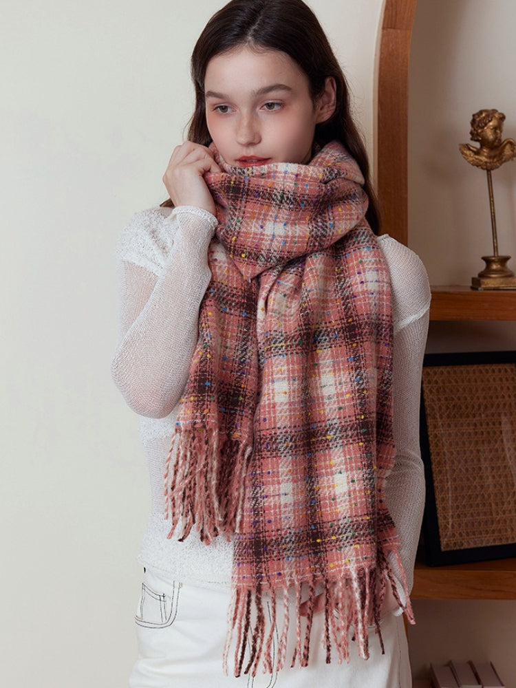 Perfect for the 'Soft Girl' or 'Artsy' aesthetic, this scarf offers a generous length of over 81 inches (206cm). Whether wrapped snugly around your neck or draped as a wide shawl to show off the subtle plaid texture, its faux cashmere finish ensures a "glutinous," soft touch that feels like a warm hug.