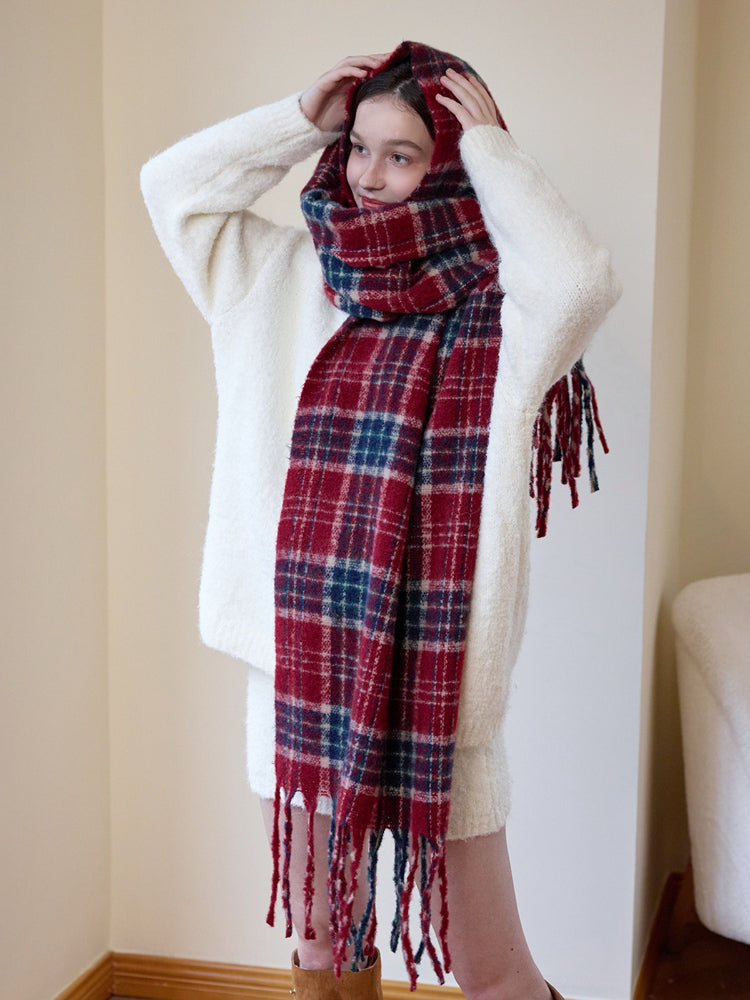 Embrace the spirit of the season with our Oversized Chunky Plaid Scarf. Designed for the woman who loves the 'Comfy Chic' aesthetic, this accessory features a bold red and navy tartan check that instantly evokes the warmth of holiday gatherings and winter cabin getaways.