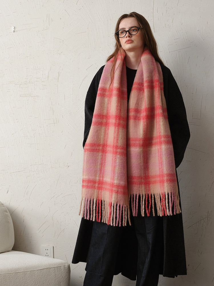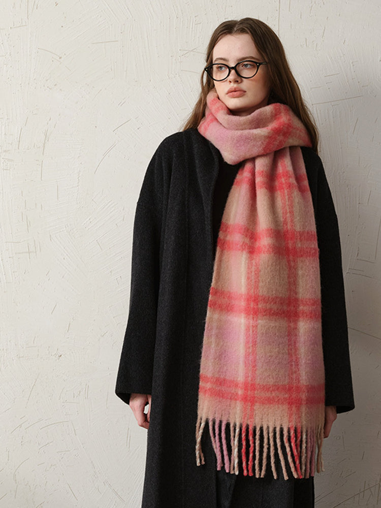 Pink Plaid Wool Blend Scarf