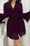 The inner slip dress is designed with a plunging V-neckline adorned with intricate floral lace and a cute bow detail, offering a supportive yet sexy fit. The matching outer robe is crafted from lightweight, sheer mesh with wide, ruffled sleeves that create dramatic movement as you walk. Whether for a bridal shower, a romantic evening, or simply lounging in luxury, this set promises to make you feel like a queen.