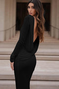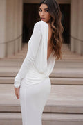 Low Back Drape, Long Sleeve, Mermaid Fit, Maxi Length. Dress Length for Size S: 150cm/59''.