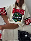 Retro Varsity "Camping" Oversized Knit Hoodie