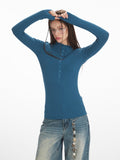 Y2K Essential Ribbed Henley Long Sleeve Top