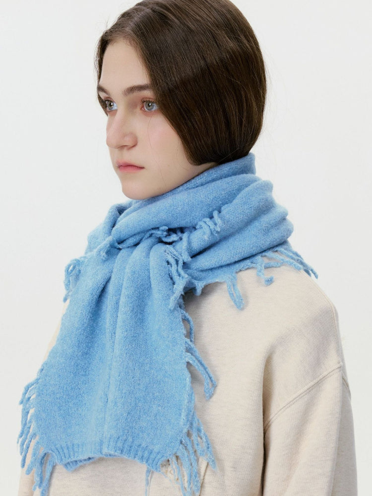 - Unique Fringe Detail: The "messy" or distressed tassel ends add a modern, relaxed vibe to the classic knit scarf.