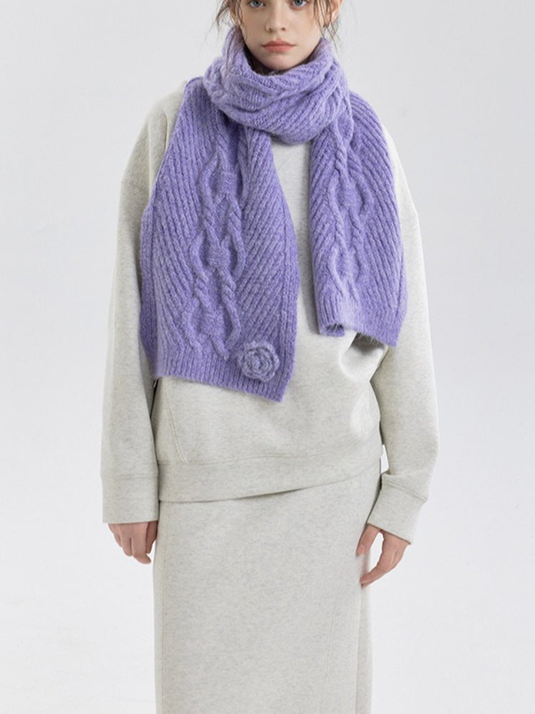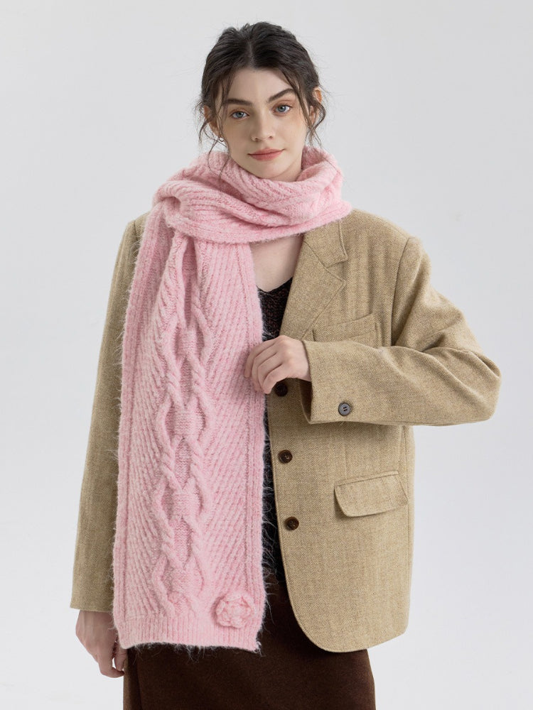 Vintage Rose Cable Knit Scarf