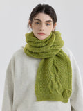Woven from a cozy Wool Blend, this scarf offers substantial warmth without compromising on style. Weighing in at a plush 9.3 oz (265g), it feels thick and comforting around the neck. The Matcha Green hue (as shown) brings a breath of fresh forest air to grey winter days, making it the perfect statement piece to layer over a cream sweater or a vintage corduroy jacket.