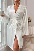Make your wedding morning unforgettable with this luxurious White Satin Bride Robe. Designed specifically for the bride-to-be, this elegant kimono serves as the perfect "getting ready" outfit for hair and makeup sessions, ensuring you look flawless in your pre-wedding photos.