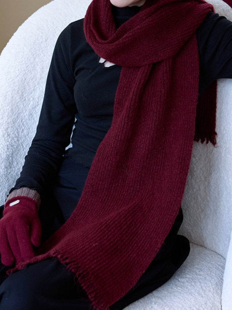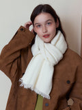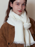 Perfect your Clean Girl aesthetic with our Cream Wool Blend Ribbed Scarf. Moving away from traditional finished edges, this accessory features a chic raw hem design that adds a touch of distressed, effortless cool to a classic silhouette.